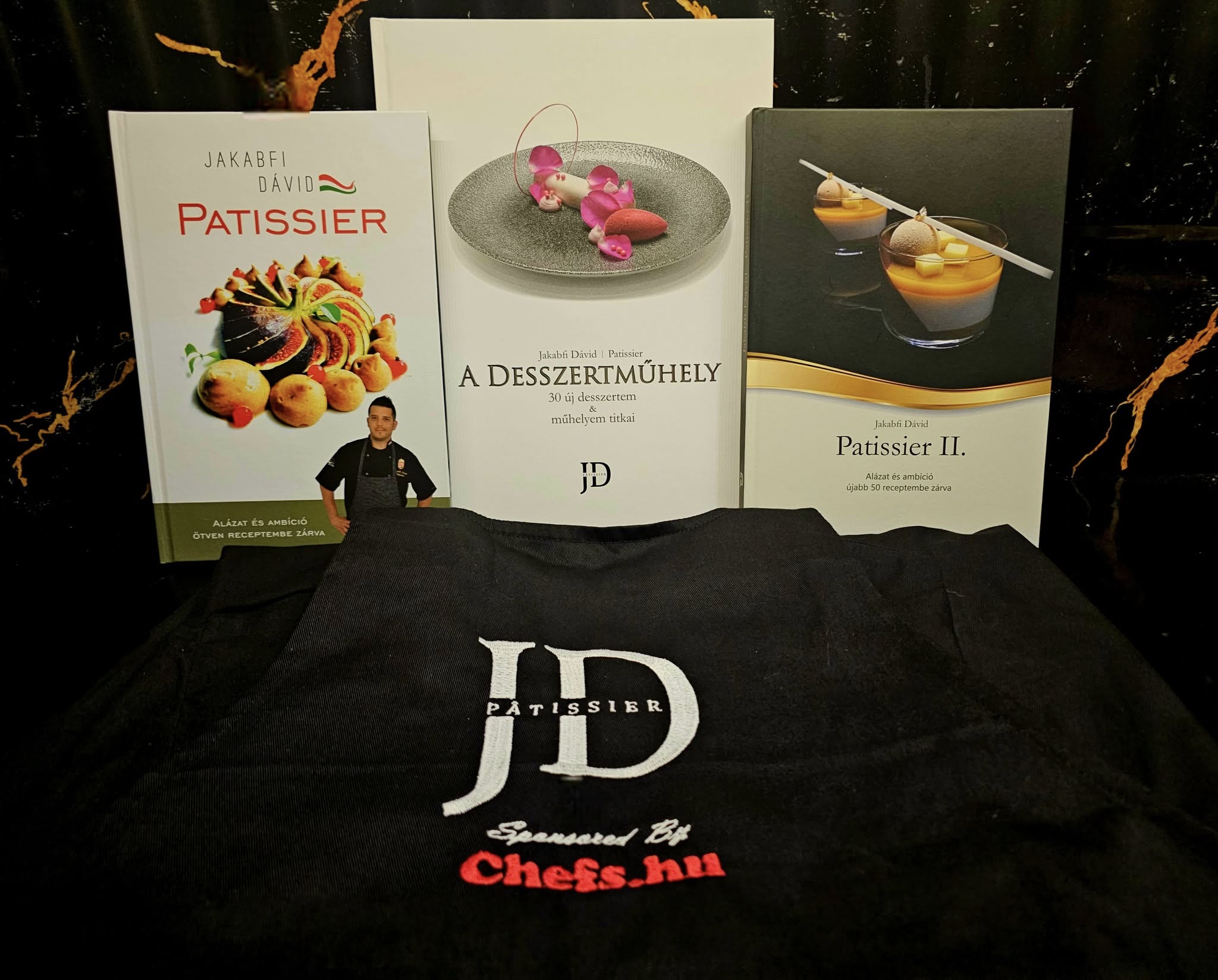 A három könyv, ami most itt pihen az asztalon: Patissier I, Patissier II és A Desszertműhely. Megszereztem őket, elolvastam – és nem receptkönyvként markánsan, hanem tanításként, inspirációként, példaként érték nálam. Ezekben a lapokban nincs „elég jó”; itt a részletekben él az élmény, itt van a maximális igényesség. A kötény? Az már csak a hab a tortán – mert egy szép könyv, amit valaki lelkesen fog magához, az is művészet.