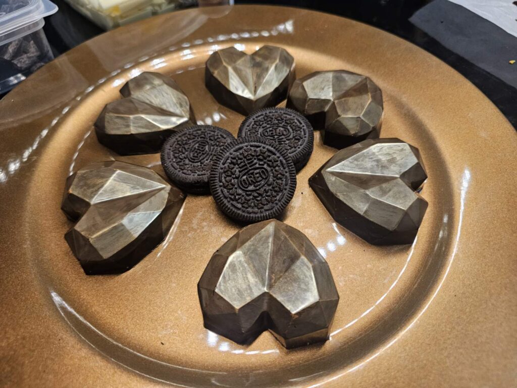 Ha van valami, amit igazán imádok készíteni, az a bonbon. Egy apró csokoládéba zárt műalkotás, amiben határtalan lehetőségek rejlenek. Legyen töltött, ropogós, fűszeres vagy gyümölcsös – minden egyes darabban ott van a kísérletezés izgalma. Rengeteget tanultam az alapanyagokról, a temperálás fontosságáról, és napról napra egyre kifinomultabb technikákkal dolgozom.